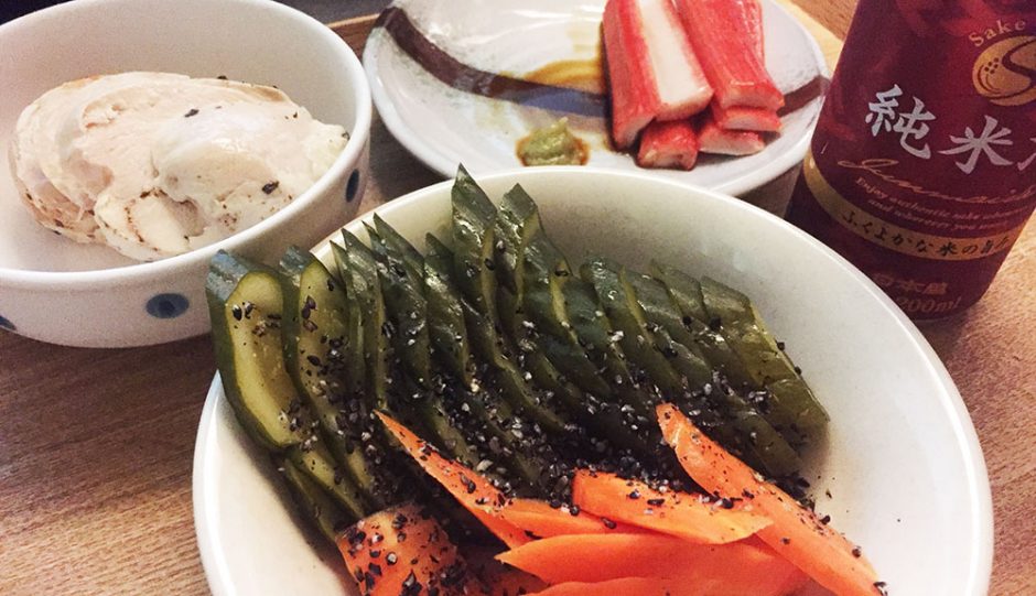 写真見てたら別の日だけど、もうぬか漬けと鶏ハムを一皿に盛っちゃってるのがあった。なんだか先付けっぽい。