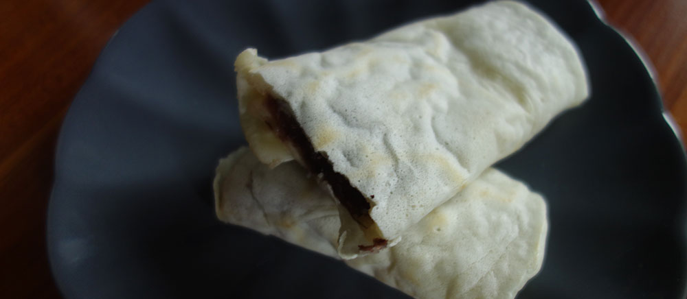 表を焼きつつあんこをのせて、あとはくるくるっと出来上がり。